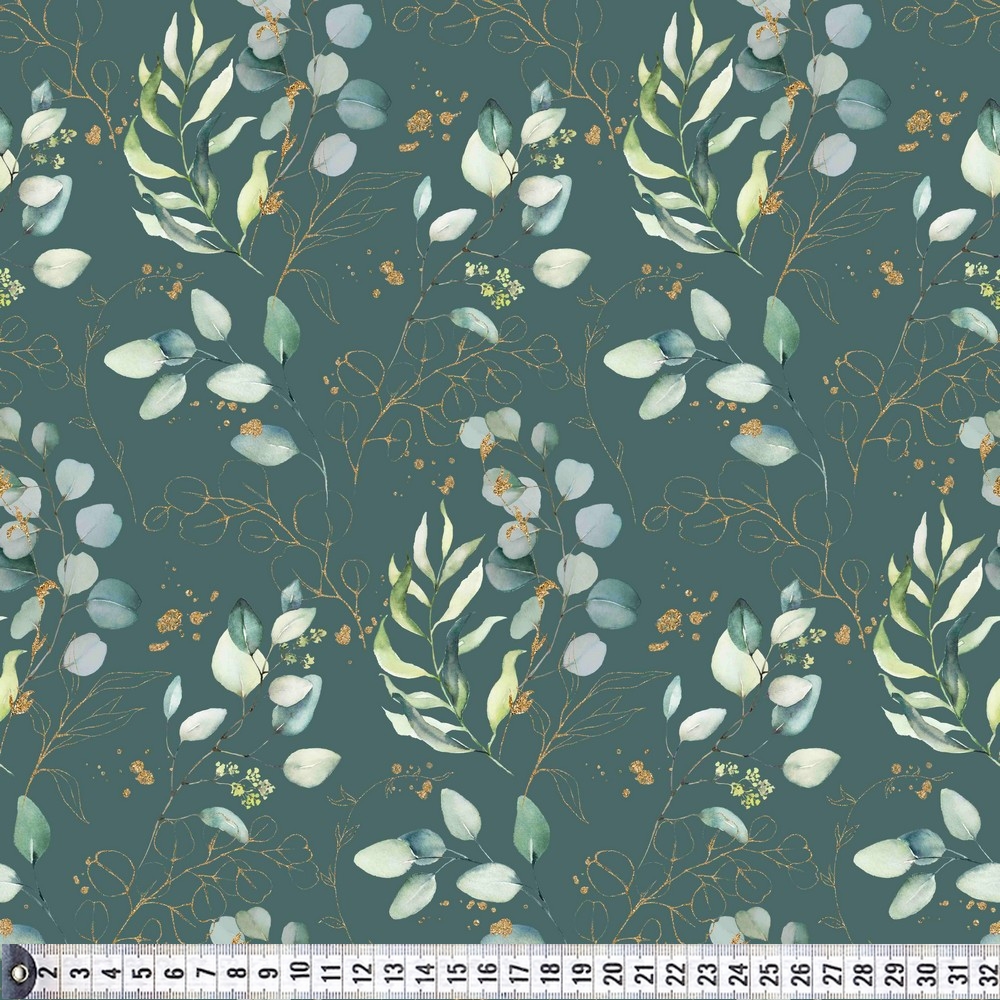Økologisk Bomuldspoplin. Eucalyptus Leaves, dusty petrol