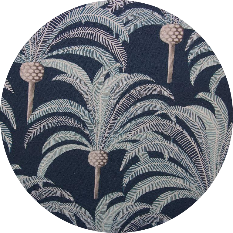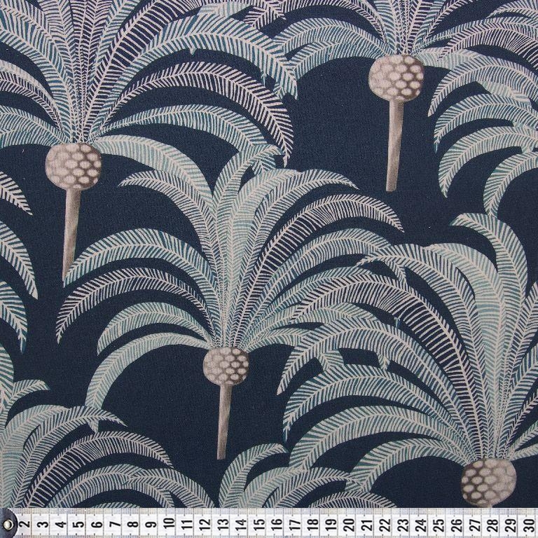 Kanvas stof med palmer på mørkblå bund