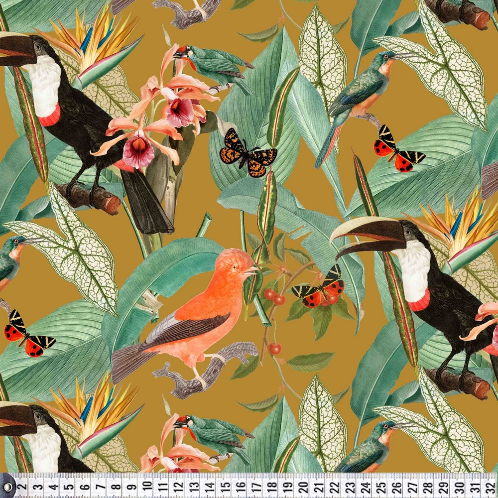 Kanvas stof med tropiske fugle