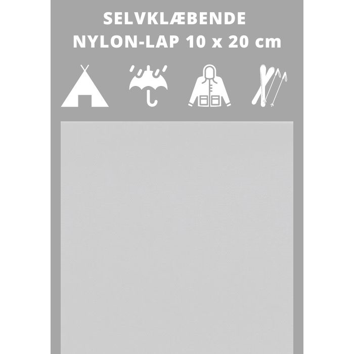 Selvklæbende og vandtæt nylonlap til reparation af huller på tøj eller udstyr hvor det er svært at sy og umuligt at stryge. Det kan f.eks. være dunjakke, skitøj, flyverdragt, barnevogn, telt eller sæde. Stort udvalg af selvklæbende reparationslapper i mange farver; samt reflekslapper og transparente (gennemsigtige) universal lapper.