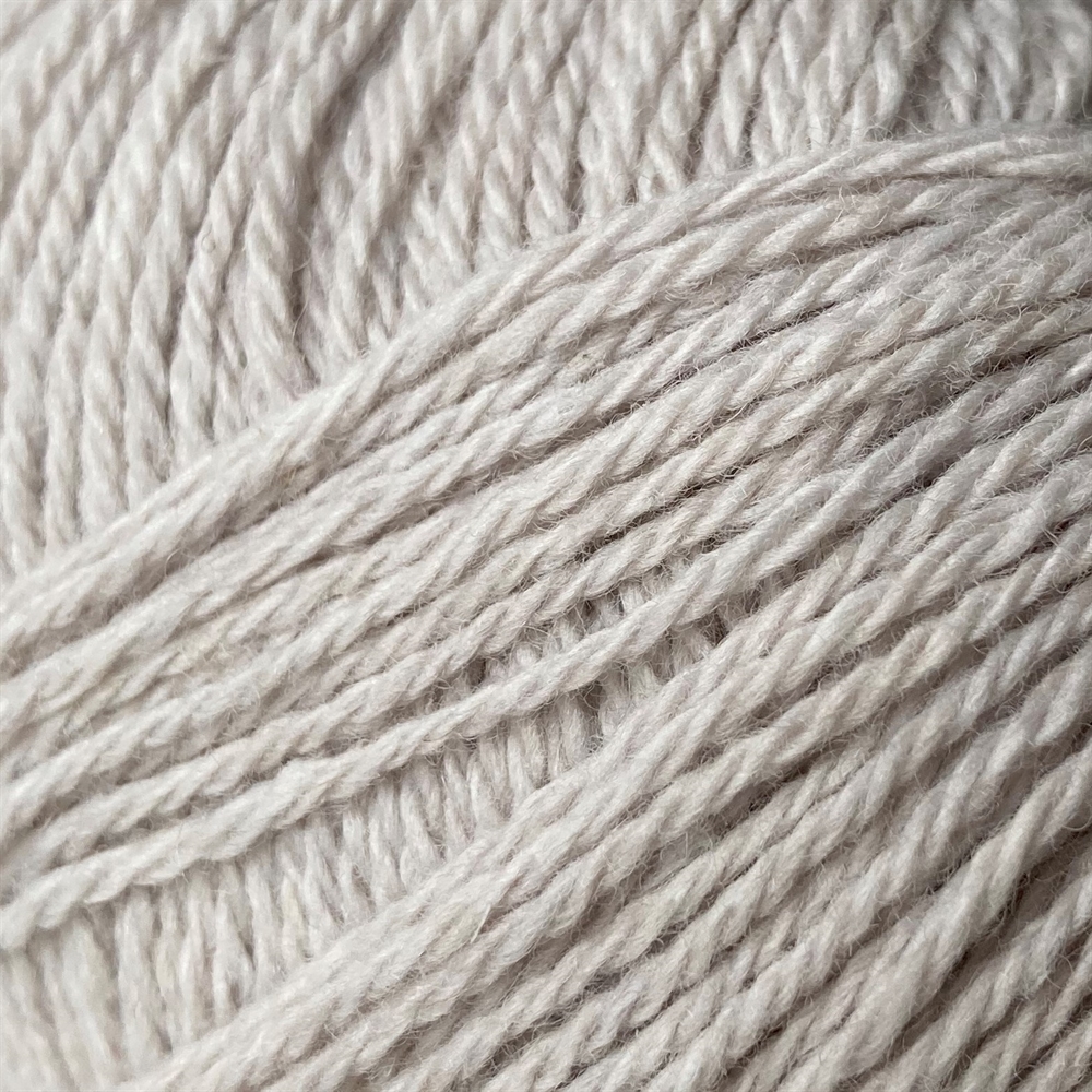 Helårsgarn i 55 % uld og 45 % bomuld (50 g = 230 m.) Strikkefasthed: 26m x 36 p på pind 3. Oeko-tex og non mulesed uld.