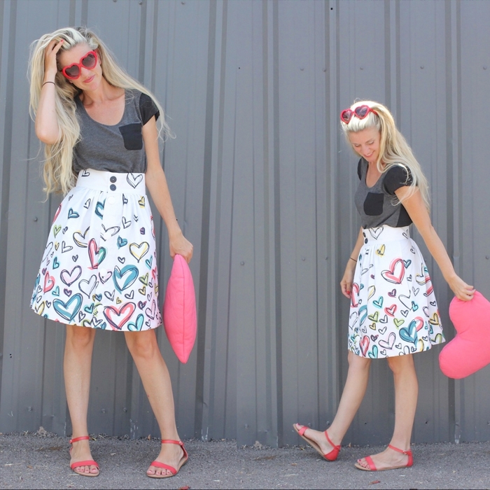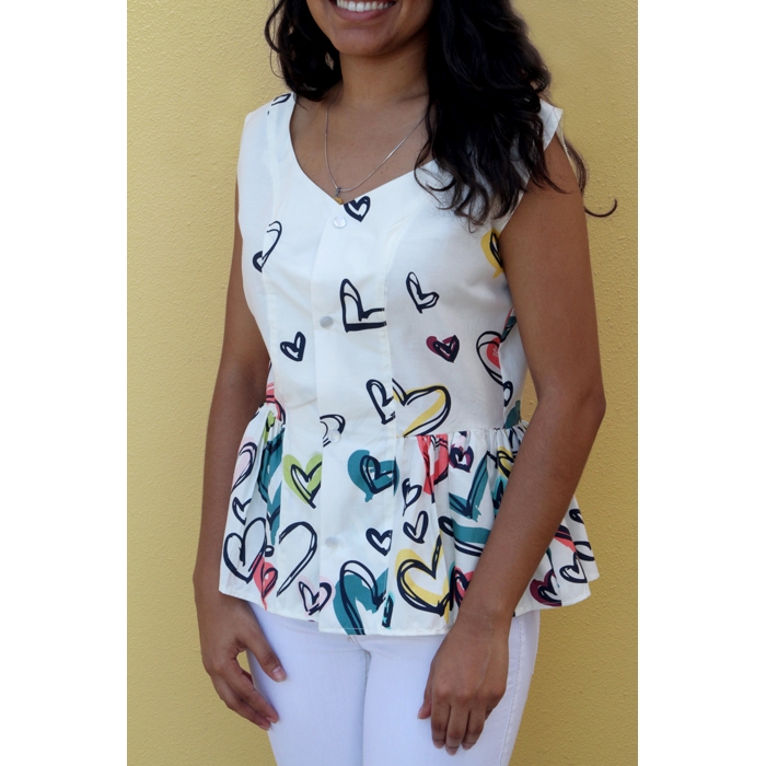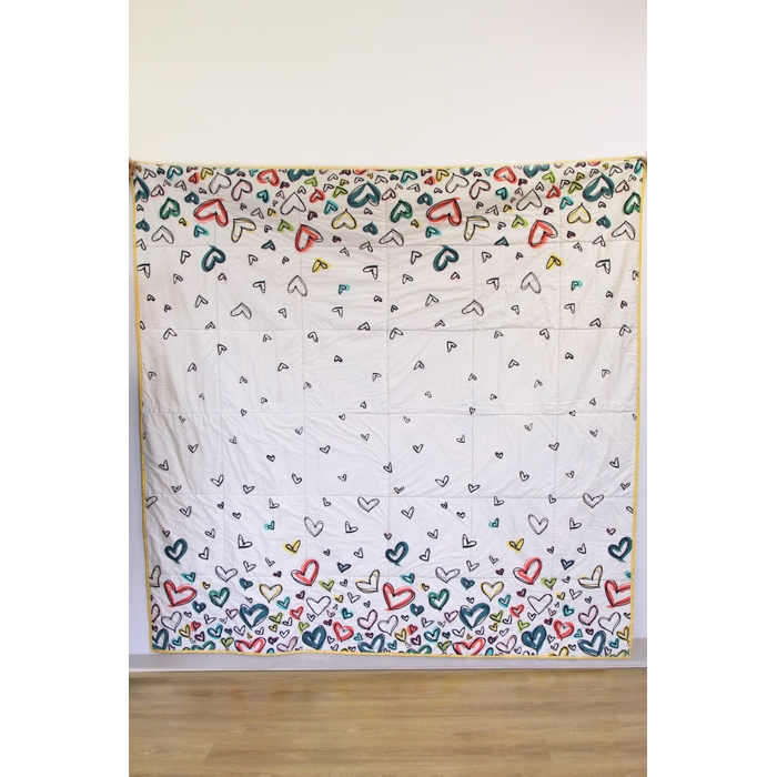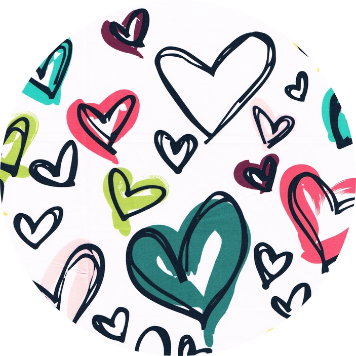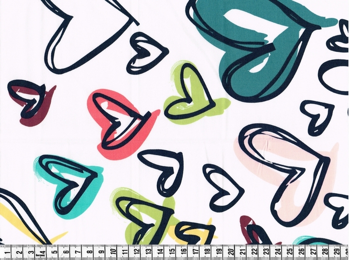Bomuldsstof med borderprint af hjerter, pr. m.