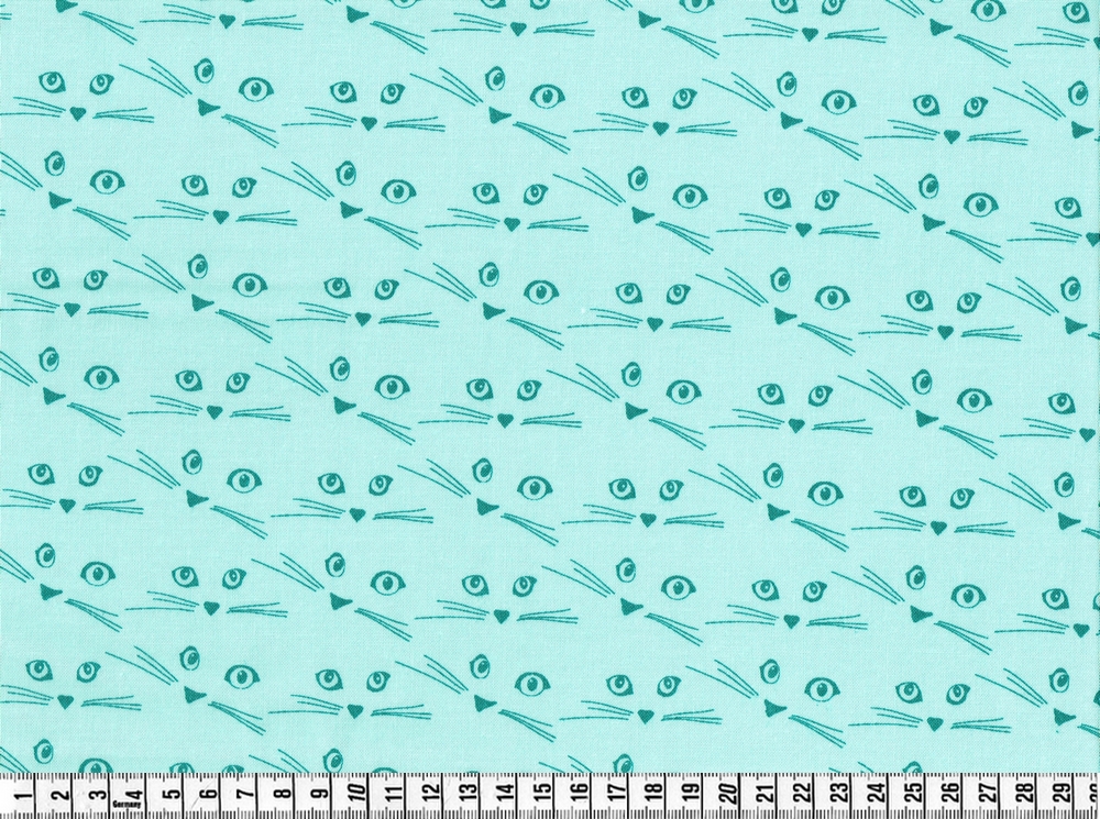 Bomuldsstof m. katteansigter. Cattitude, pr. m.