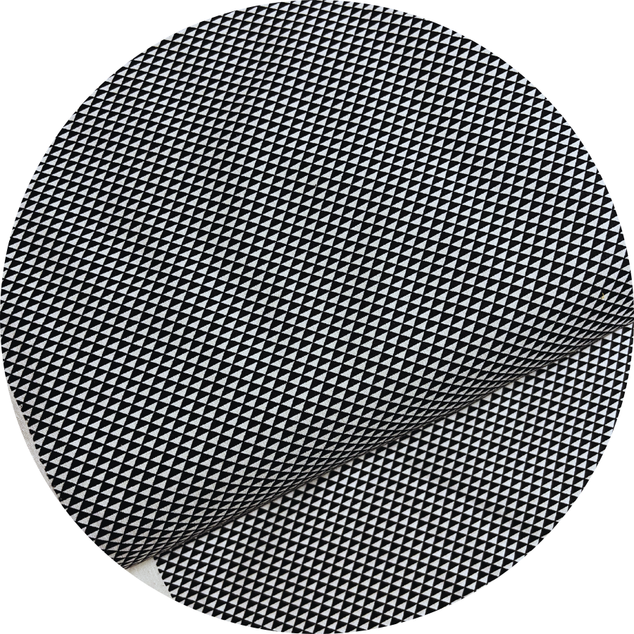 Stof med små sorte og hvide trekanter