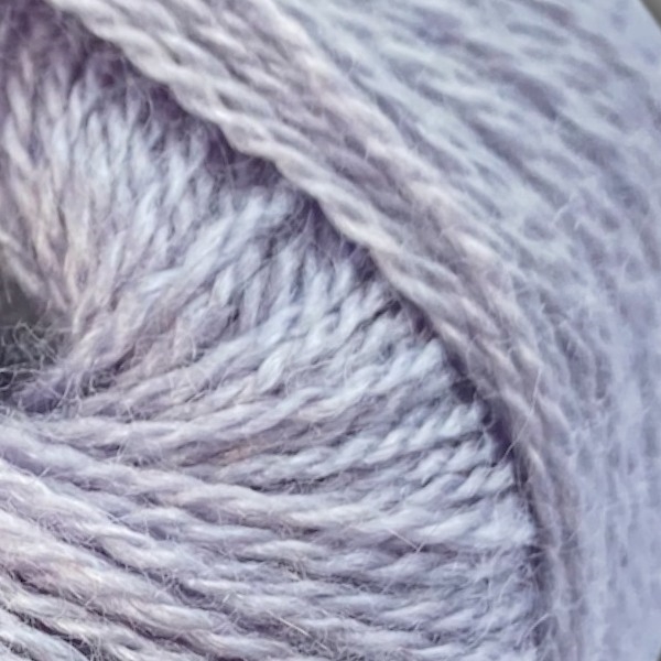 Farven på dette garn er lys sølv med et skær af lavendel farven.